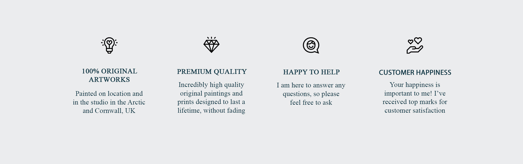 - Customer happiness - art collectors and print buyers are universally happy with their purchases and often buy more than one piece