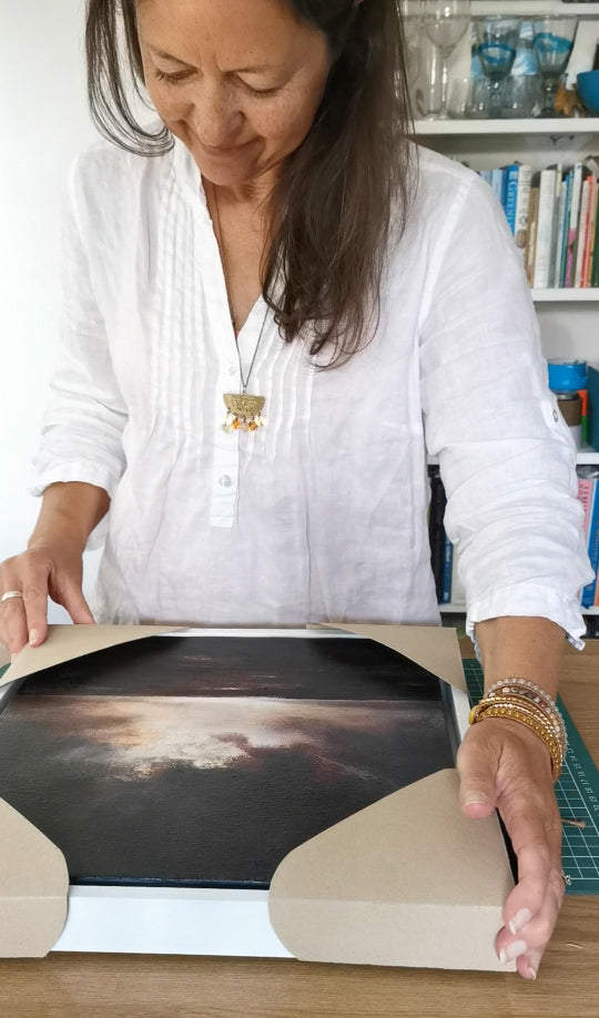 "I bought a series of 3 oil paintings in June. Kari has really captured the feel and warmth with her use of light and colours. I love looking at them as they allow me to feel free and hopeful - I get lost in the scenes and I can almost feel the sea breeze! Kari's customer care is amazing and I can't recommend her highly enough." - Lisa Mullarkey - 5 Stars